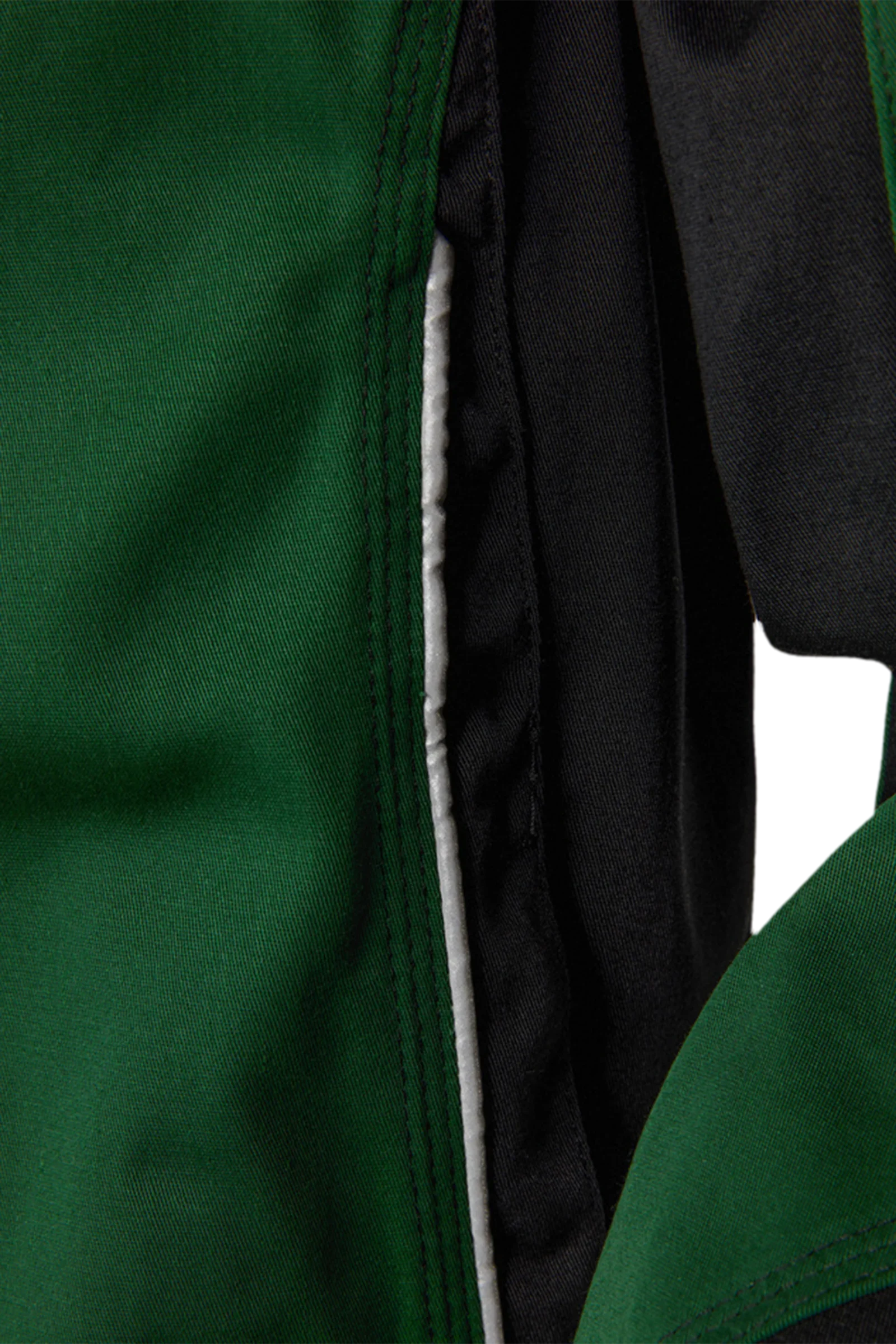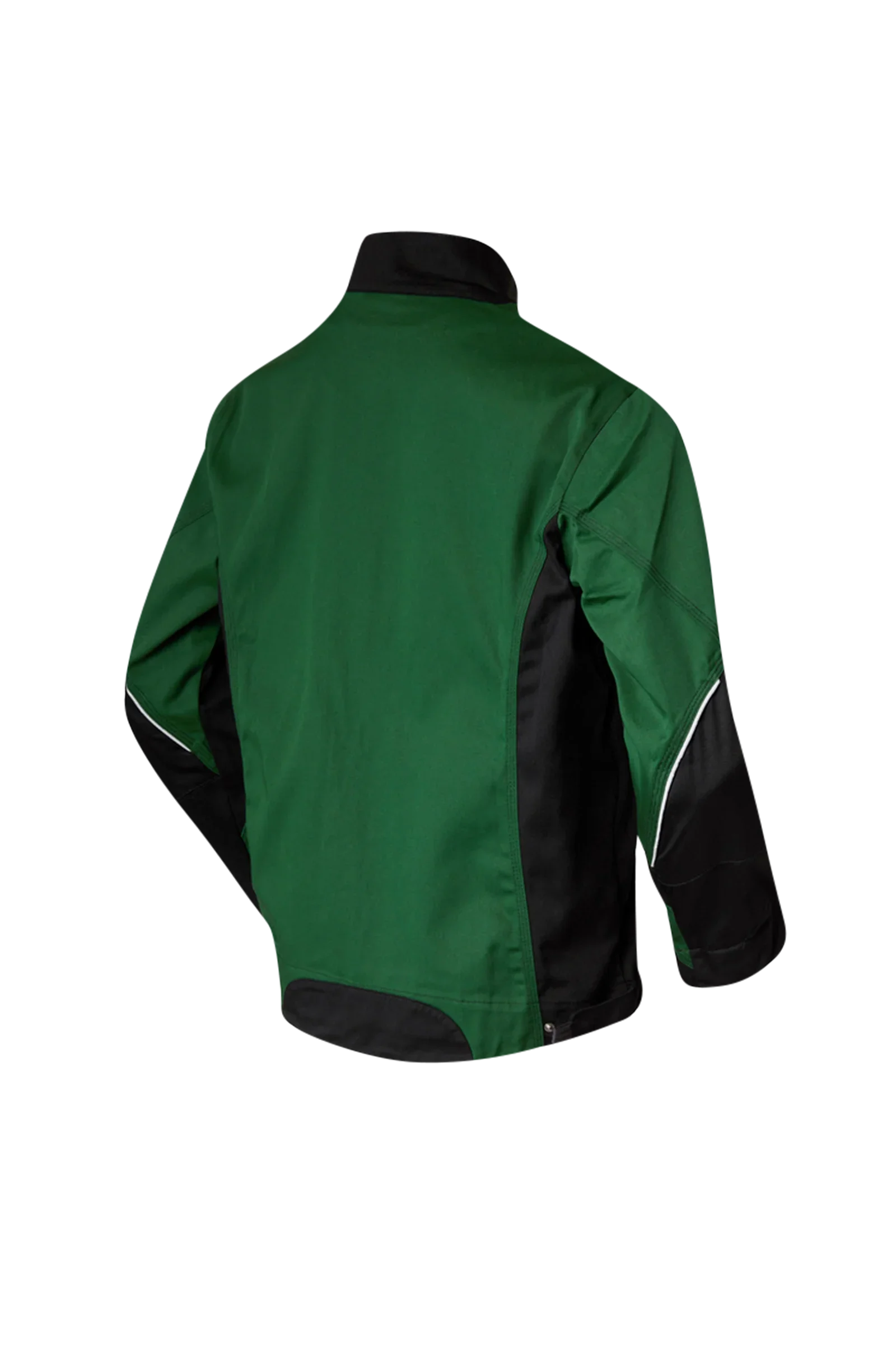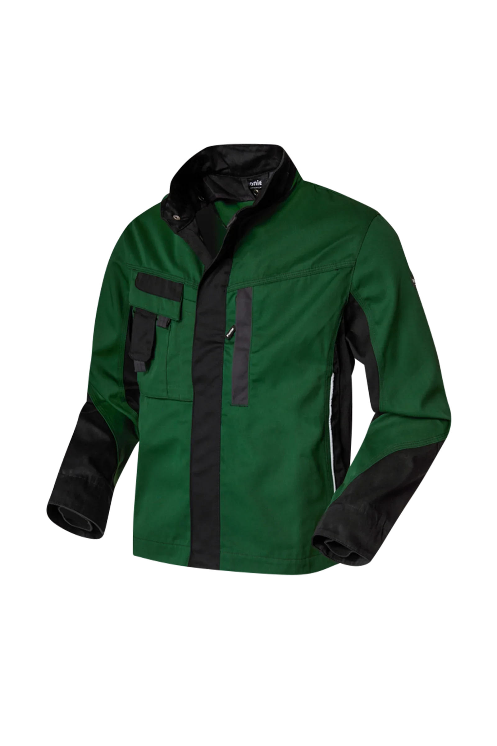 Leasingtaugliche zweifarbige Bundjacke, Stehkragen, verdeckter Reißverschluss, zwei eingesetzte Seitentaschen mit verdecktem Reißverschluss, Innentasche, eine innenliegende eingesetzte Brusttasche mit verdecktem Reißverschluss, eine aufgesetzte Blasebalg-Brusttasche mit Patte, Stifttasche, aufgesetzte Handytasche auf der rechten Brusttasche, extra langer Rücken, innenliegende Ärmelstrickbündchen, innenliegende Druckknöpfe zum Einknöpfen einer Innenweste, Bundweitenverstellung durch Druckknopflasche, Reflexpaspel vorne und an den Ellenbogen
