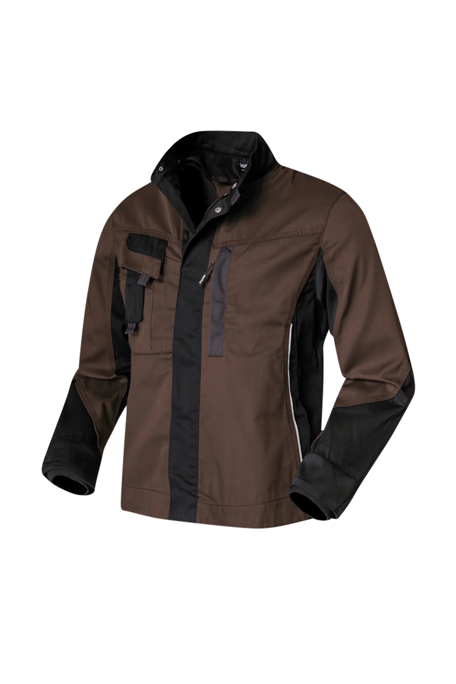 Veste professionnelle bicolore adaptée au leasing, col montant, fermeture à glissière dissimulée, deux poches latérales insérées avec fermeture à glissière dissimulée, poche intérieure, une poche poitrine intérieure insérée avec fermeture à glissière dissimulée, une poche poitrine plaquée à soufflet avec rabat, poche pour stylos, poche plaquée pour téléphone portable sur la poche de poitrine droite, dos extra-long, poignets Pulls Giletsés à l'intérieur, boutons-pression à l'intérieur pour boutonner un gilet intérieur, réglage de la taille par bouton poussoir, passepoil réfléchissant sur le devant et aux coudes