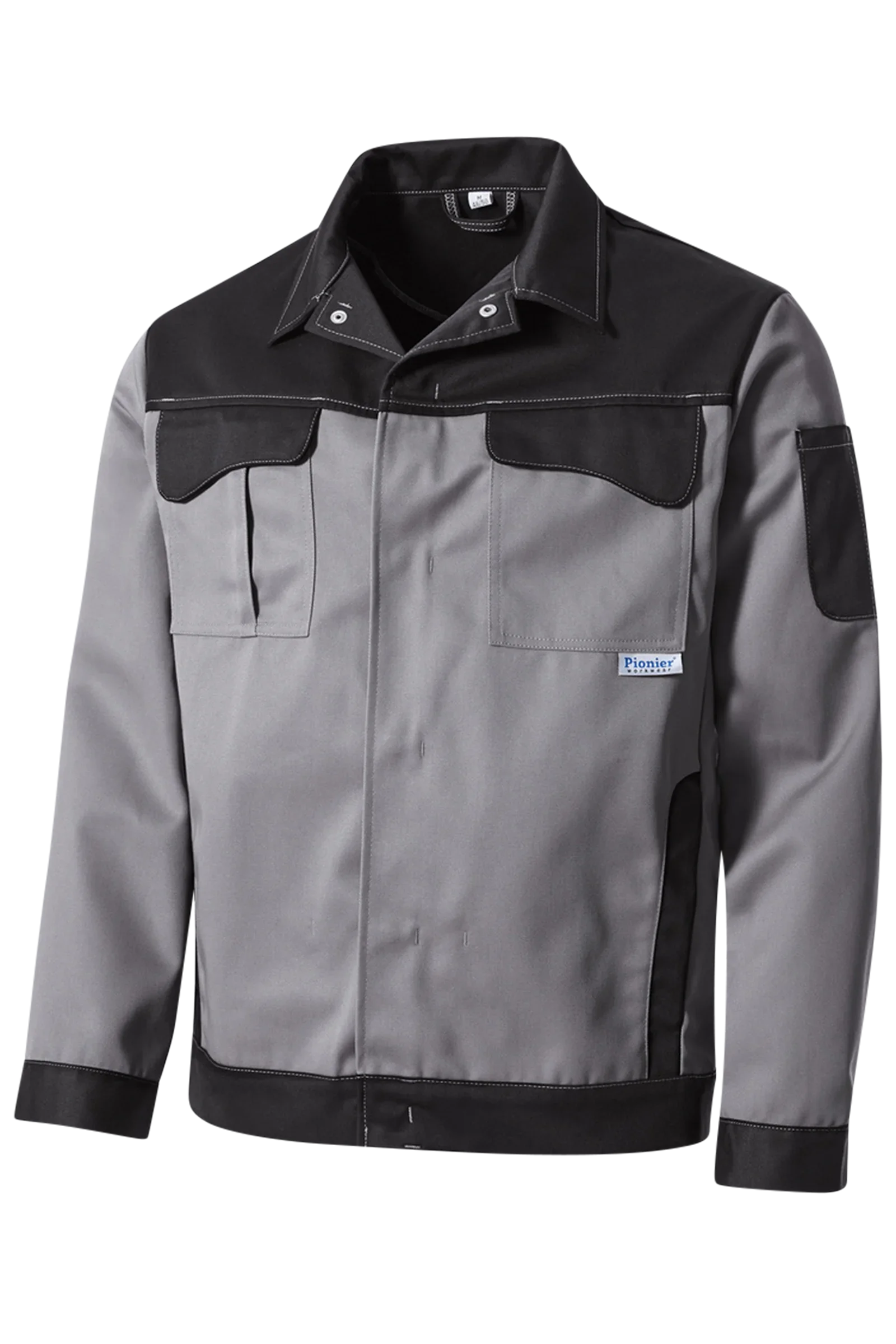 Two-tone waist jacket with turn-down collar, concealed press stud placket, two chest pockets with flap and concealed press stud fastening, right with mobile phone pocket incl. Velcro fastening, one sleeve pocket on the left divided into two pen pockets, two set-in side pockets, cuffs with concealed adjustable press stud fastening